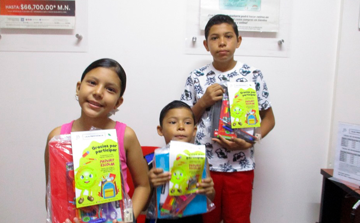 Con el inicio del nuevo ciclo escolar, Caja Providencia se suma a disminuir el impacto económico que representa, es por ello, que se toma esta iniciativa que promueve la educación y la cultura del ahorro desde temprana edad. Como cada año se lanza esta campaña, que consta de la entrega de Provikits de útiles escolares a los niños y niñas que realizaron depósitos en su cuenta de ahorro, previo al regreso a clases.