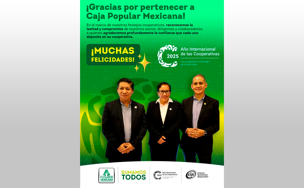 Este mes es un reconocimiento para todas las personas que integran esta gran familia cooperativa ya que desde hace varios años, Caja Popular Mexicana institucionalizó la tercer semana del mes de octubre como del cooperativismo, en la cual reconoce varias fechas importantes: el día del socio, día del colaborador, día del dirigente, día del joven cooperativista y sobre todo, su aniversario que va camino a los 75 años una fecha que seguramente será memorable para todos sus miembros y la comunidad.