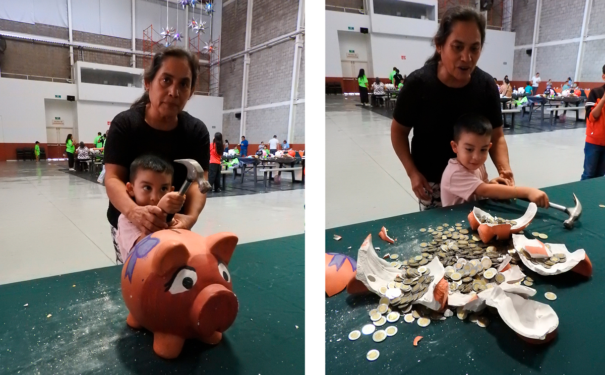 En este evento se invita a todos a que traigan su imaginación y UNIFAM les proporciona alcancías, pintura y pinceles para decorarla, con el compromiso de que el próximo año será quebrada y su ahorro depositado en su cuenta y así iniciar un nuevo ciclo con una nueva alcancía por llenar.